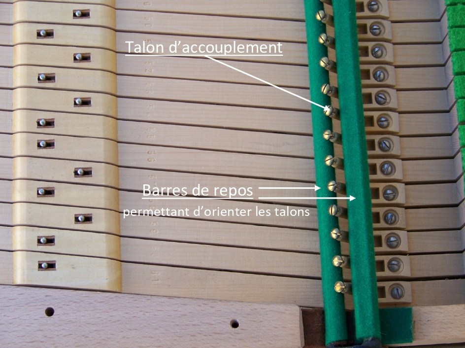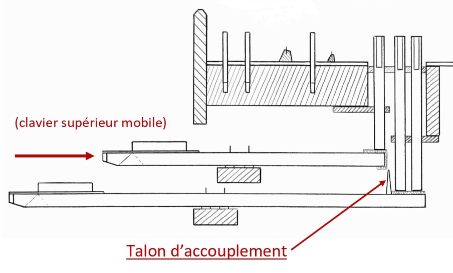 Une fois poussé, la queue de ses touches entre en contact avec le talon ; les deux claviers sont accouplés.