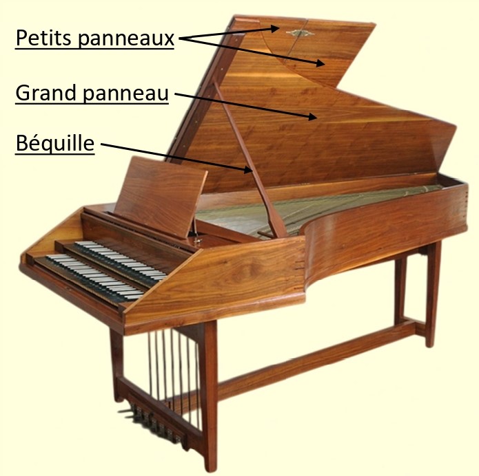 À l’instar du piano, une deuxième béquille, extrêmement courte, permet une très légère ouverture du couvercle.