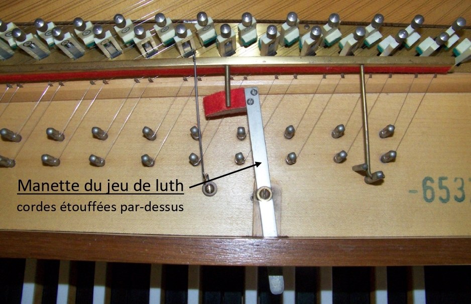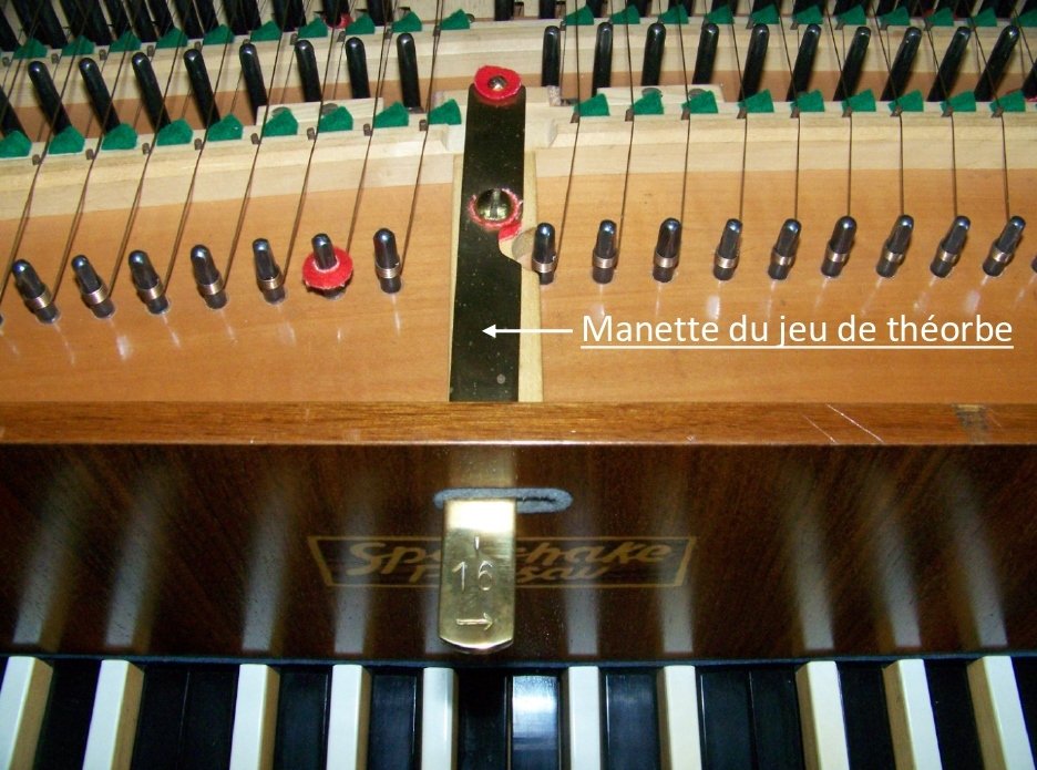 L’effet s’obtient en agissant soit sur une manette ou une tirette fixée sur le sommier et traversant la gorge (photographie ci-contre), soit directement sur la pédale.
